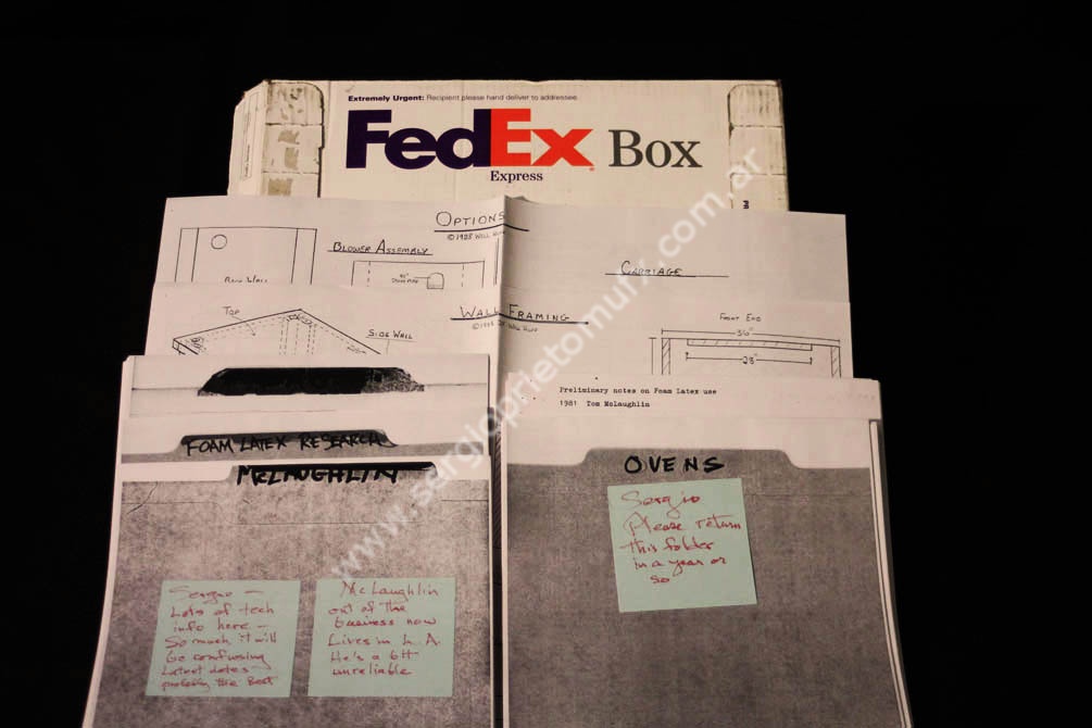 Cuando llega la encomienda, no solo traía la batidora, Dick había incluido tres carpetas de sus archivos personales, con todas sus notas, fórmulas y correspondencia con colegas sobre el trabajo con látex foam... Algo para abrumar a cualquiera. Me pedía que luego de leerlas, por favor se las devolviera. Cosa que así hice luego de pedirle me permitiera fotocopiarlas, a lo que accedió inmediatamente, desde luego. Se trataba de una mina de oro en cuanto a la información que contenían.