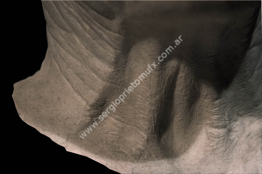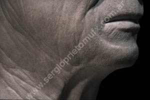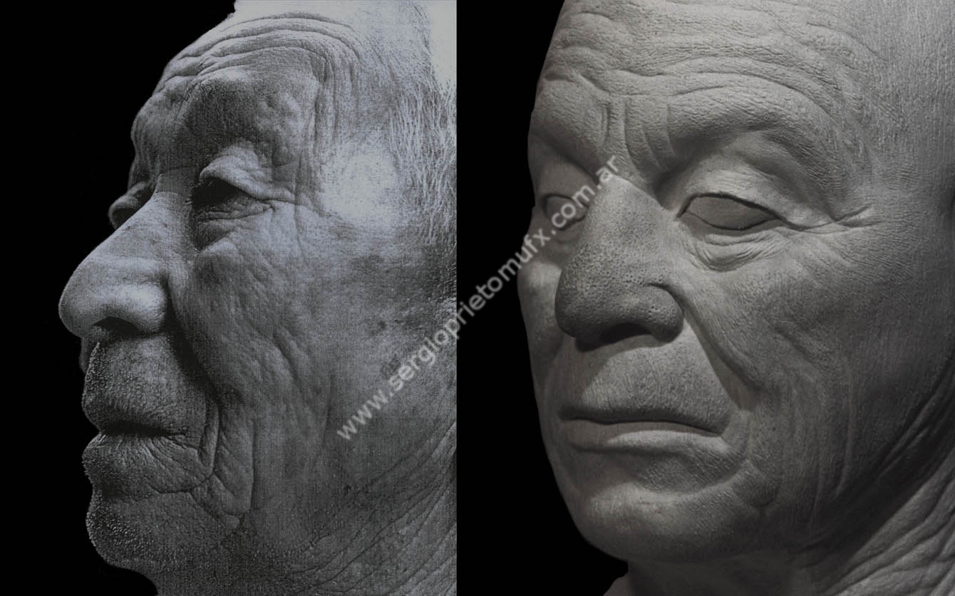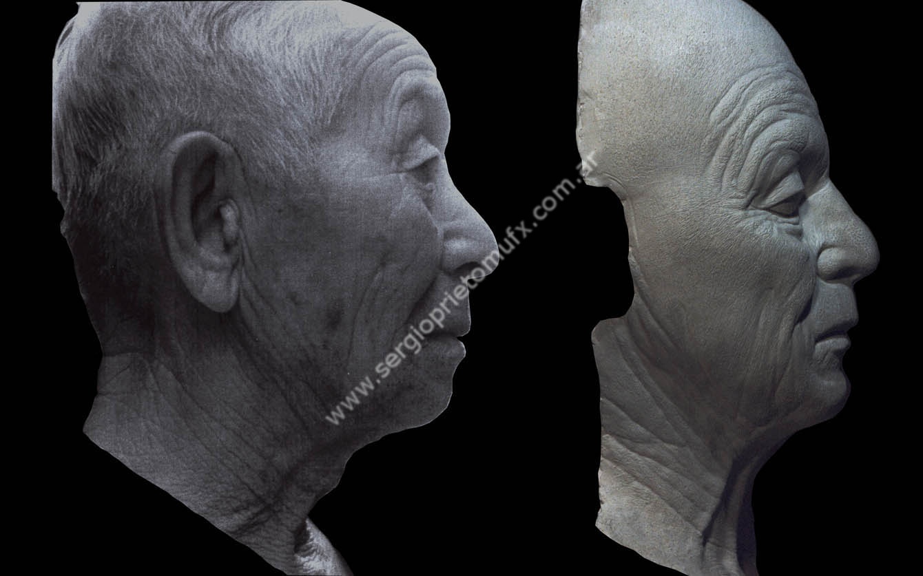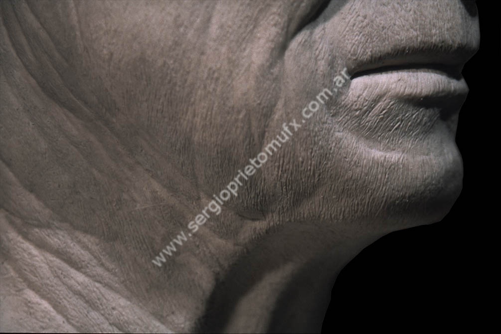 Caracterización inspirada en un material que me envió Dick Smith. Me había facilitado unas fotos de un cuello envejecido, como referencia para una escultura. Claramente, las fotos no eran recortadas de ninguna publicación, sino tomadas por alguien como material de referencia.