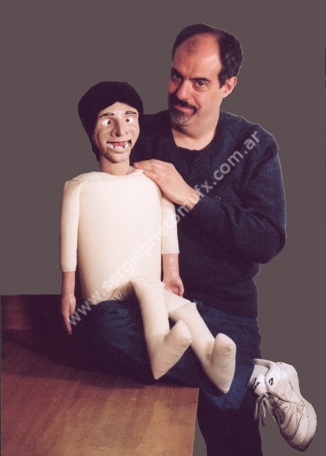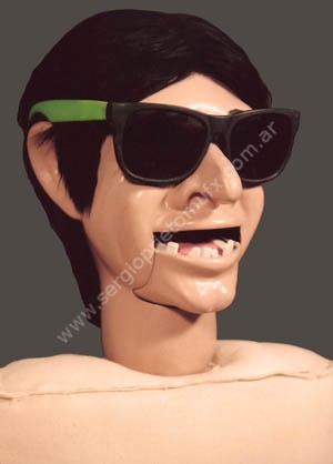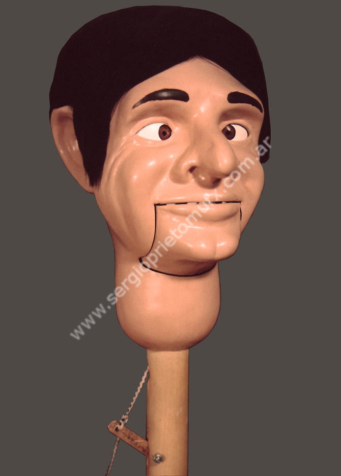 Realizado en fibra de vidrio, madera y tela. La mecanización (en este caso, la boca) es la tradicional americana, accionada con un gatillo.