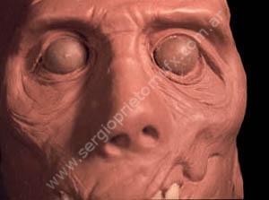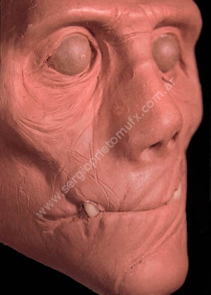 Los pasos: primero se realiza, sobre un life mask descartado, la escultura en sí. En este caso, utilizo Plastilina Profesional Chavant NSP Medium Brown, la cual se convirtió en un estándar de la industria.