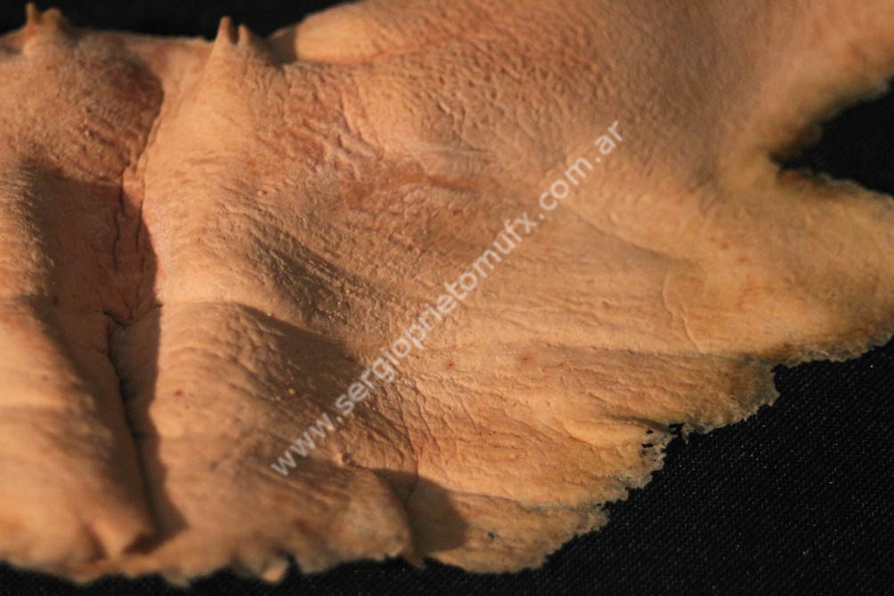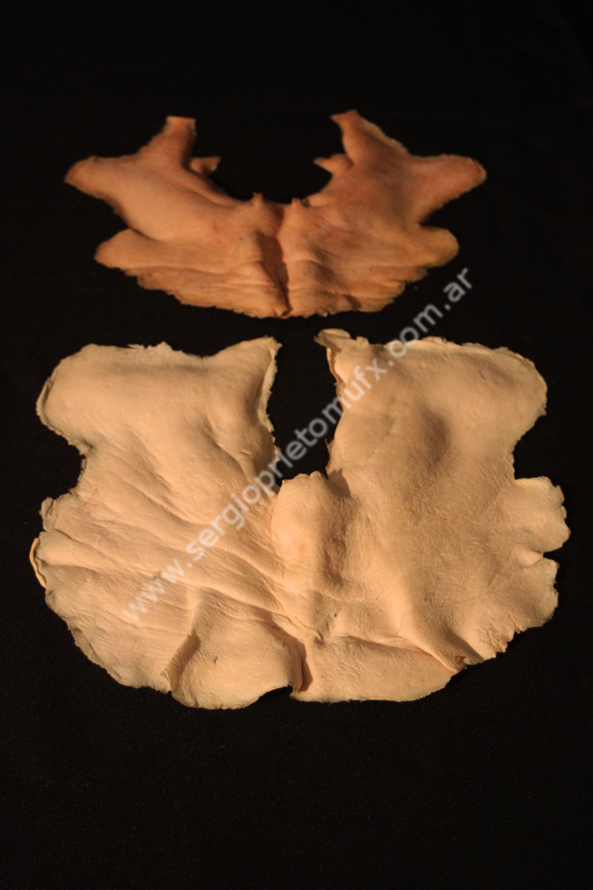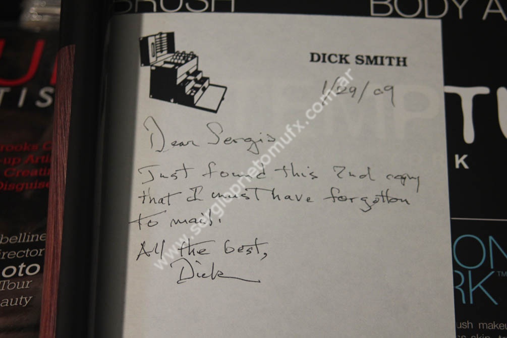 - En el curso, Dick ofrecía en préstamo unas prótesis en espuma de látex, confeccionadas por él, para que cada alumno tuviera una clara muestra de lo que se debe esperar en una prótesis realizada profesionalmente. Cuando me llegan las prótesis, le pregunto cuál es la mejor manera de duplicarlas sin dañarlas, ya que eran un excelente material de referencia. En el siguiente mail, me envía una larga serie de pasos sobre varias posibles maneras de copiarlas. Pero al final me dice :"Aunque no vas a necesitar hacer nada de esto, porque te las regalo".
