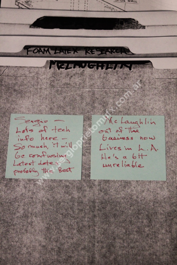 Cuando llega la encomienda, no solo traía la batidora, Dick había incluido tres carpetas de sus archivos personales, con todas sus notas, fórmulas y correspondencia con colegas sobre el trabajo con látex foam... Algo para abrumar a cualquiera. Me pedía que luego de leerlas, por favor se las devolviera. Cosa que así hice luego de pedirle me permitiera fotocopiarlas, a lo que accedió inmediatamente, desde luego. Se trataba de una mina de oro en cuanto a la información que contenían.