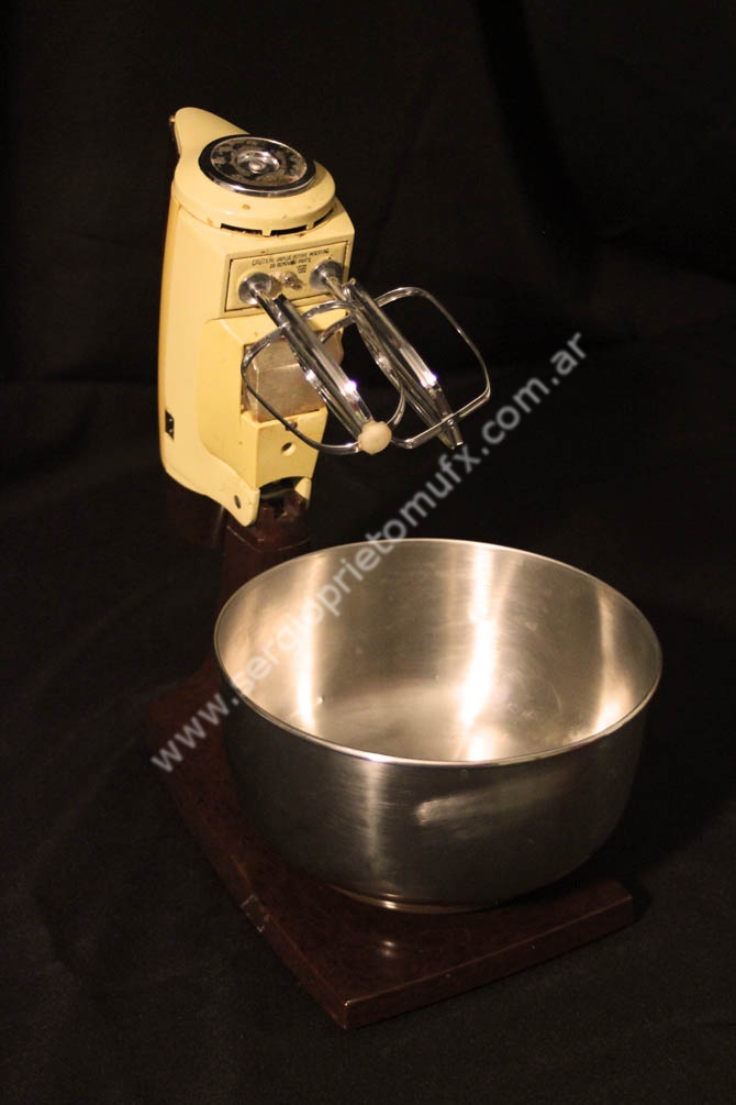 -Cuando empiezo a trabajar con espuma de látex, Dick me pregunta si no puedo conseguir una batidora Sunbeam, ya que con estas se consiguen los mejores resultados.