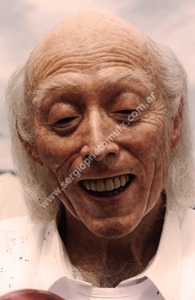 -Para ejemplificar cómo modelar arrugas en un rostro, Dick me envió un vaciado en uretano. Me contó que había sido copiado de un life mask de su rostro. Este life mask fue tomado por su amigo Kasuhiro Tsuji, con el objetivo de hacer... el muñeco de un personaje, un científico loco, a ser instalado en un parque de diversiones en Japón! Cuando me contacté con Kasuhiro, él tuvo la gentileza de enviarme las fotos del trabajo terminado, el cual yo no conocía. Dick como científico loco. Algo de eso debe tener...